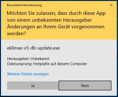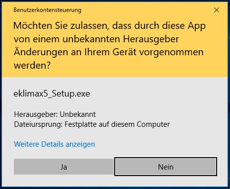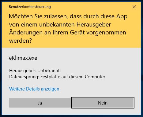 Die Benutzerkontensteuerung von Windows fragt Sie ob eKlimax.exe Änderungen an Ihrem PC vornehmen darf.
