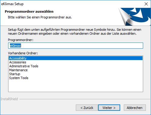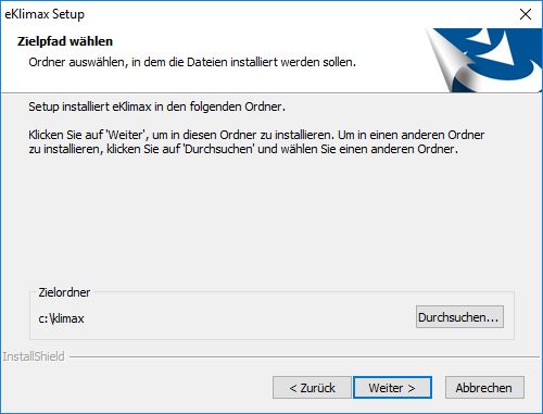 Wählen Sie das Installationsverzeichnis für e-klimaX. Es wird empfohlen die Voreinstellung zu belassen.