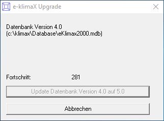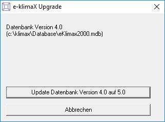 den Updatevorgang an dieser Stelle noch unterbrechen und e-klimaX in der alten Version wie gewohnt weiter verwenden.