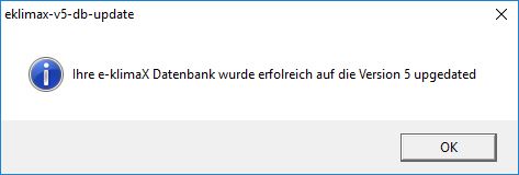 Sofern beim Datenbank-Update Fehler auftreten wird Ihre vorhandene e-klimaX Datenbank nicht verändert sodass Sie wie gewohnt weiter mit e-klimaX Arbeiten können. Kontaktieren Sie uns bitte in diesem Falle und führen Sie das Update von e-klimaX nicht aus.
