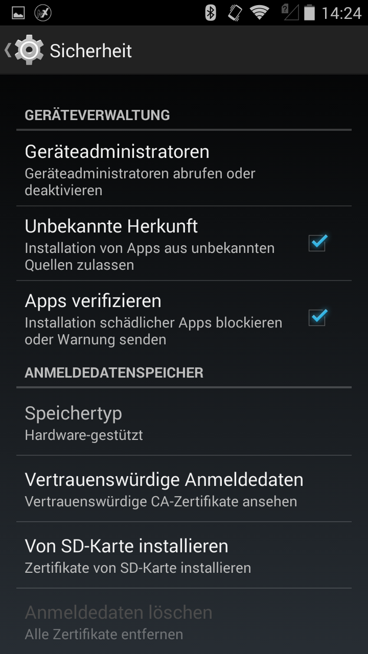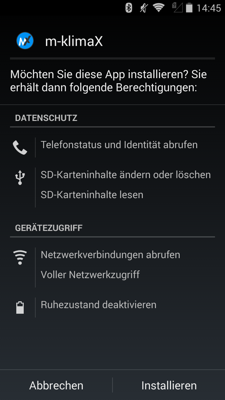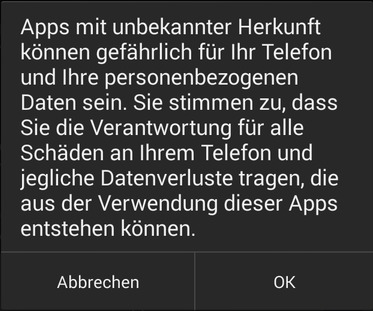 Hinweis: Um m-klimaX über einen direkten Download zu installieren müssen auf Ihrem Gerät die Installation von Paketen aus „unbekannten Quellen“ erlaubt werden. Dies ist immer dann erforderlich, wenn Installationspakete - sogenannte „APK‘s“ - von anderen Quellen außer „Google Play“ oder „Play Store“ erfolgen sollen. Dies ist eine Sicherheitsmaßnahme unter Android und erfordert entsprechende Systemrechte.