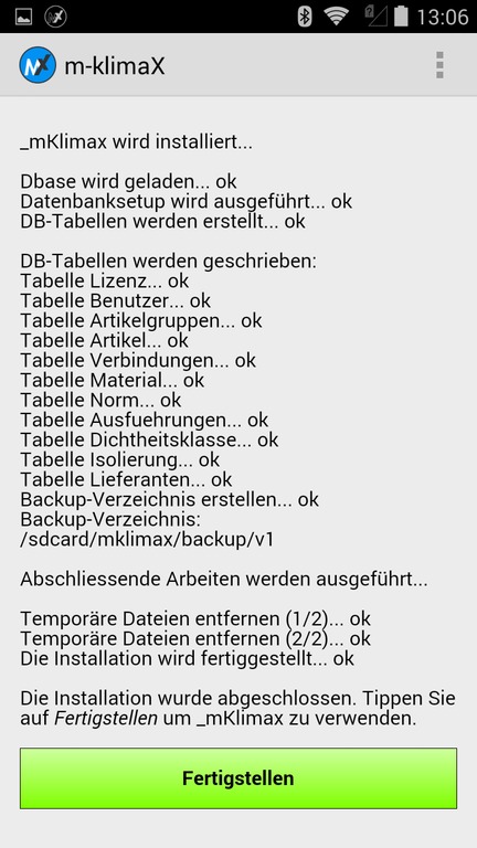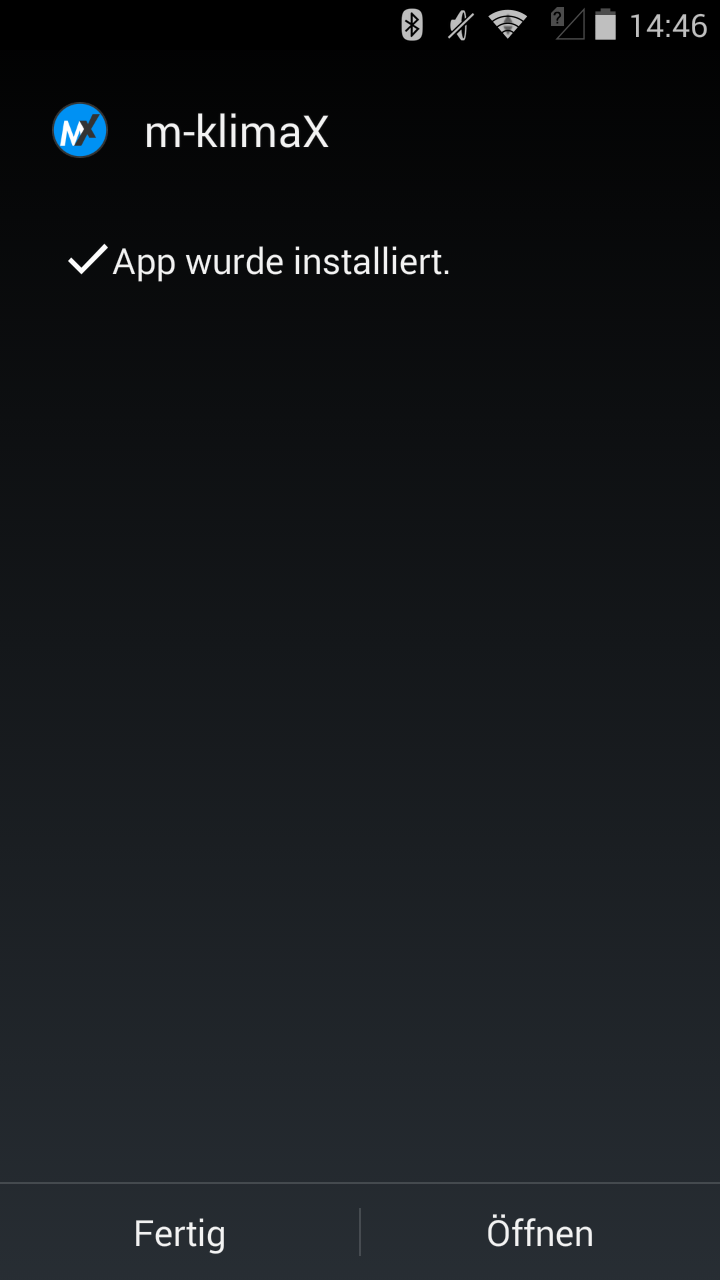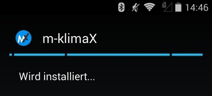 Hinweis: Beim ersten Start von m-klimaX werden einige Komponenten entpackt. Dieser Vorgang kann je nach Gerät bis zu einer Minute dauern.