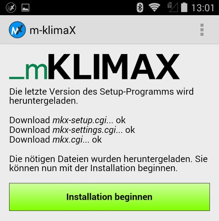 m-klimaX lädt nun alle Programmkomponenten herunter. Dieser Vorgang kann je nach Verbindungsgeschwindigkeit bis zu 2 Minuten dauern.