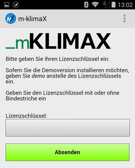 Gerät zum lizensierten Gerät und alle bisher genutzten Geräte können keine Bestellungen mehr versenden. Sie dürfen je Lizenzschlüssel nur ein Gerät mit m-klimaX betreiben.