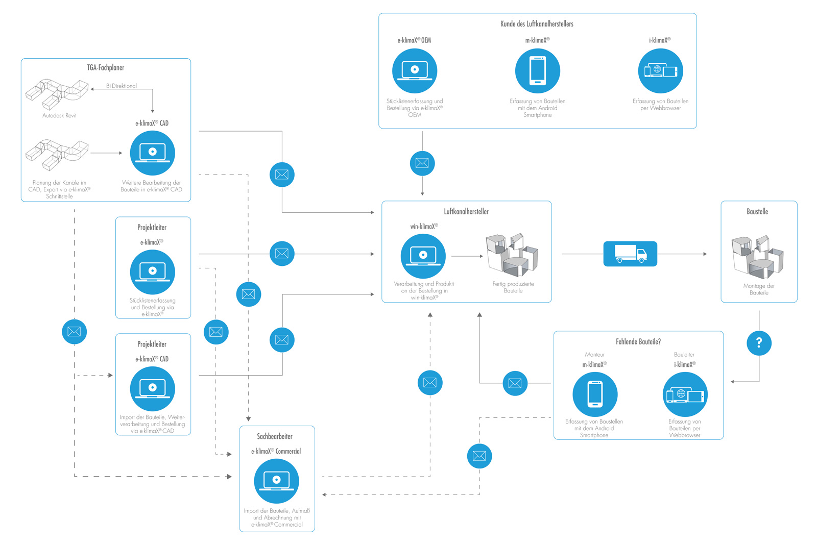 Die MEZ-TECHNIK Softwareprodukte zur Erfassung, Bestellung, Produktion und Nachbearbeitung von Luftkanalbauteilen