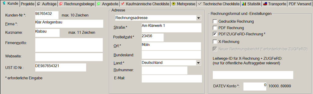 - Es können pro Rechnung auch individuelle Texte erzeugt werden. Die Ausgabe der Rechnung im ZUGFeRD-PDF Format.